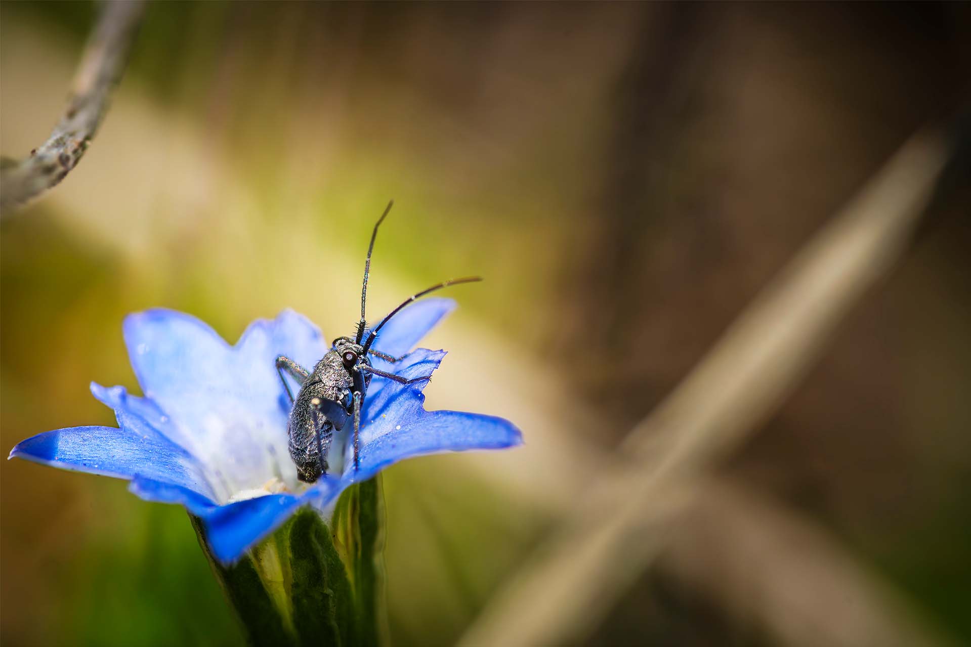 Krekel nimf op gentiaan spec. Mongolië