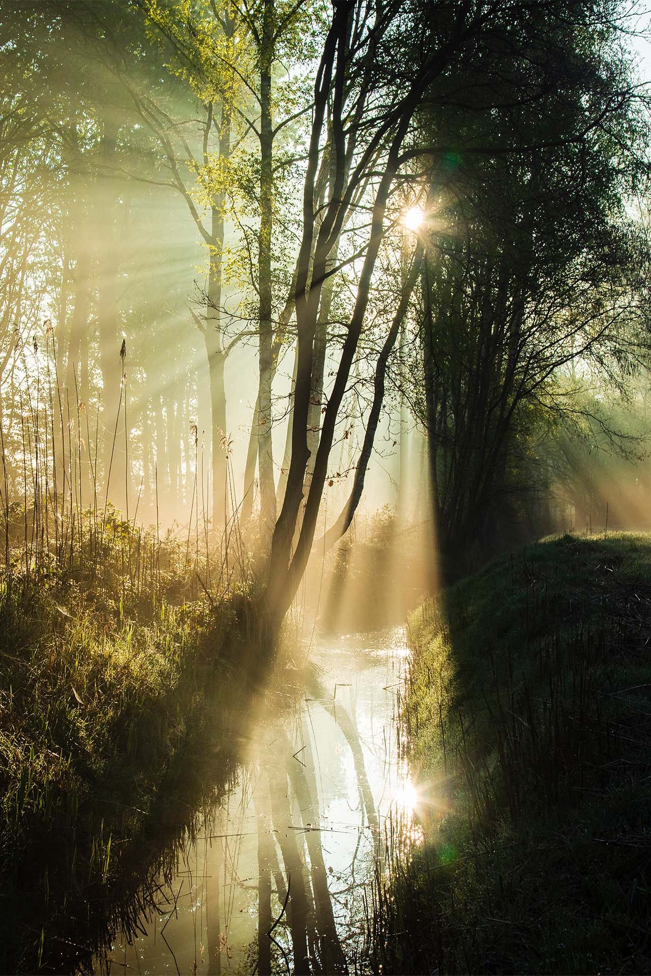 Zonnestralen in ochtendzon. landgoed de Baest aantal