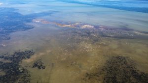 Het katoenen, met lappen gerepareerde, zijl gaat uit. Voordat het bol komt te staan klappert het in de wind. De touwen komen strak te staan en langzaam zigzaggen we over het zachte water door de kreek als ware nomaden verder. In de wirwar van slenken en geulen doet de geur van de zilte, kleiige slib me denken aan de Waddenzee. De vogels die er rondwaden zijn hetzelfde en het open water wordt afgewisseld met steile slenkoevers. Ondanks de grote gelijkenissen zijn er verschillen; flamingo’s en roze pelikanen vergezellen de Europese vogels. Op eilandjes staan lage, groene mangrovebomen die worden afgewisseld door grote, lichtgroene velden vol zeegras. Dat laatste is in Nederland al decennia verdwenen. Het geeft een vertrouwd gevoel; een opluchting dat het hier nog is.